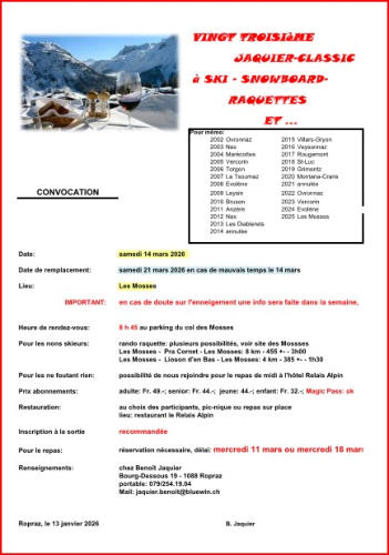 Pour 2026 a eu lieu le 14 mars aux Mosses